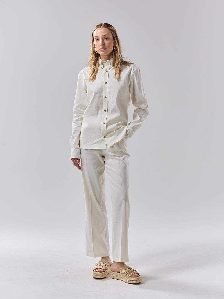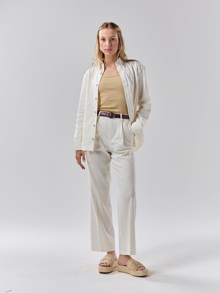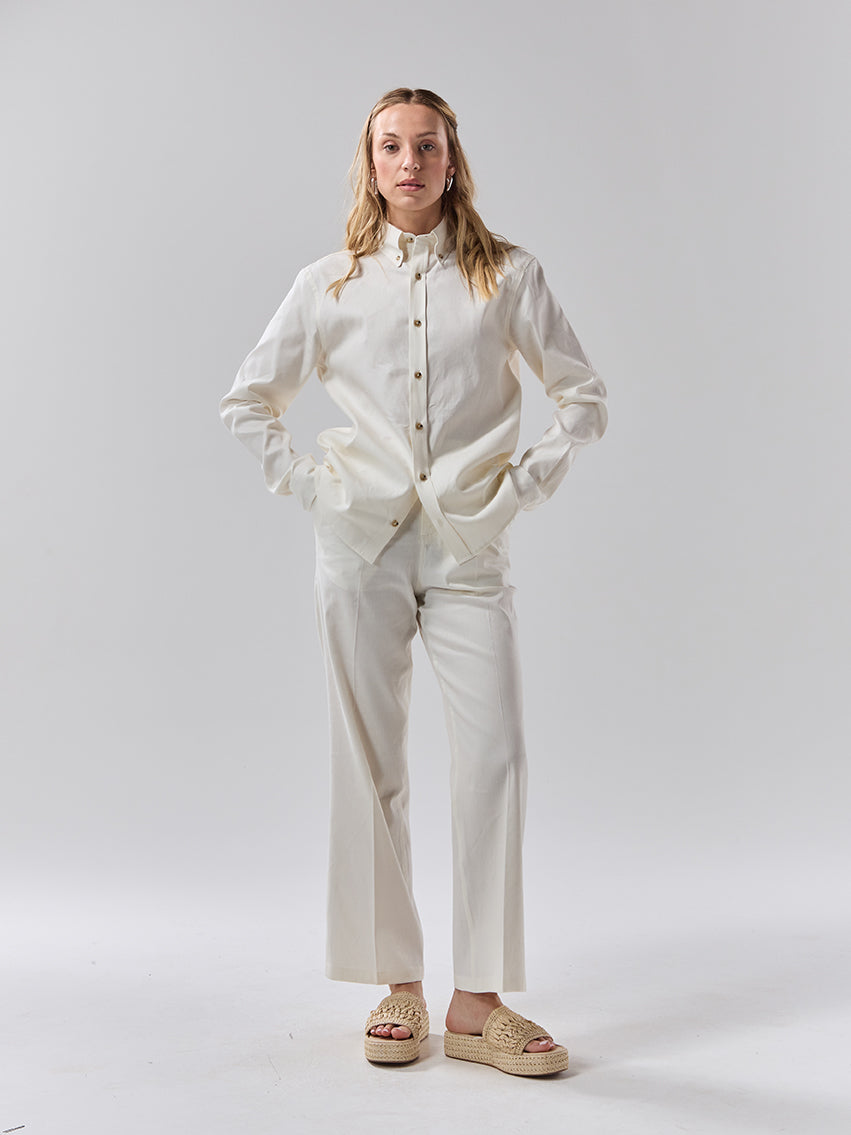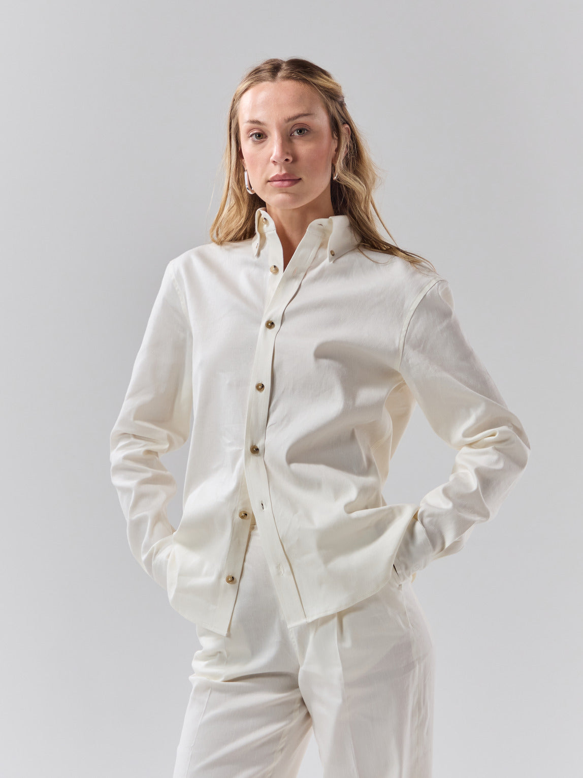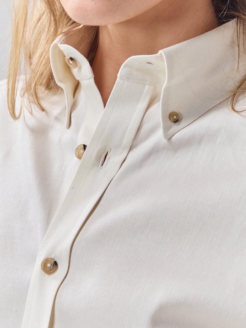 A considered blend of linen and cotton that creases less and can be worn all year round.