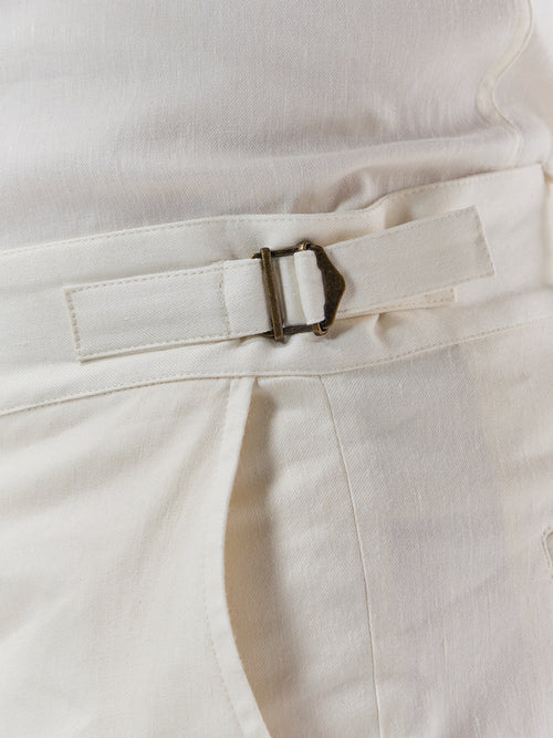 A 64% linen, 34% cotton and 2% elastane blend that is as lightweight as it is structured.