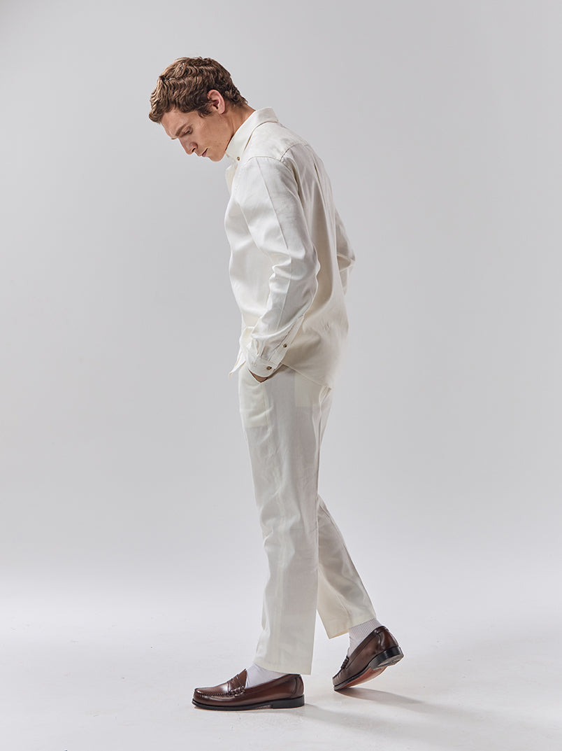 Mens Off-White Linen Trousers