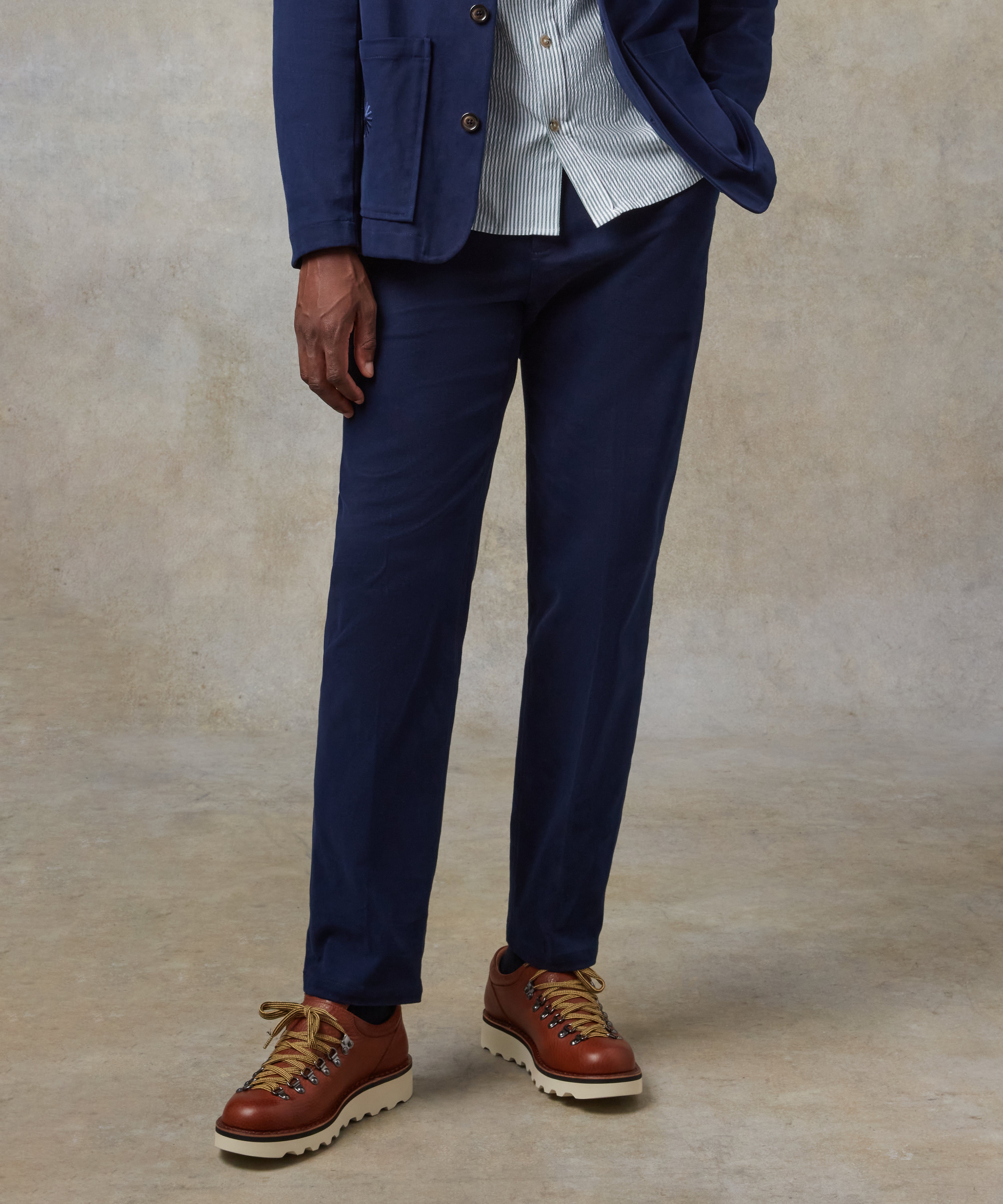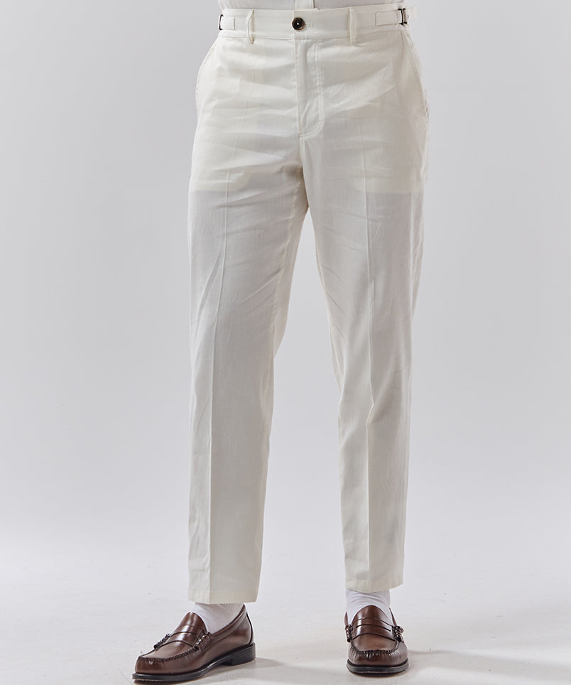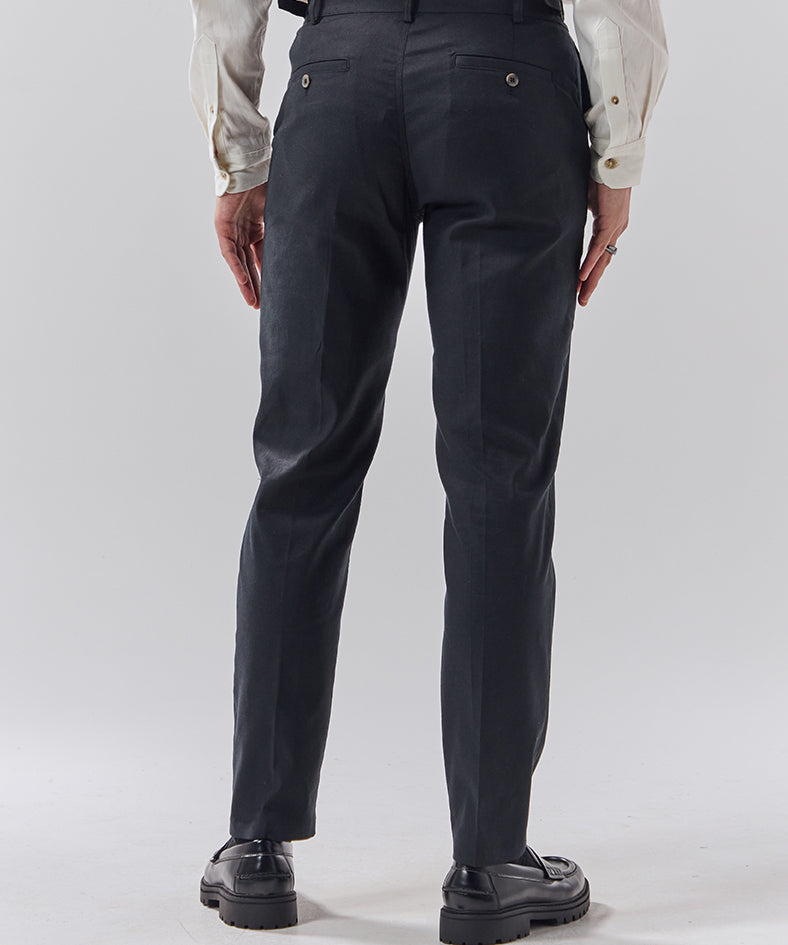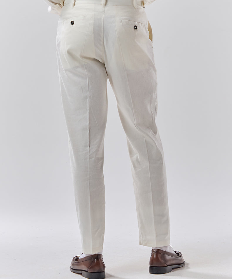 For easy, everyday wear, our cotton trousers strike the perfect balance between structure and comfort. Pair them with a relaxed shirt and sneakers for an effortless smart casual look, or dress them up with a blazer for a more polished feel. When temperatures drop, wool trousers are a go-to for warmth without bulk, working just as well with a chunky knit as they do with a tailored coat. And when summer rolls around, nothing beats the breathability of linen trousers—lightweight, airy, and perfect for relaxed styling with a simple tee or an open-collar shirt.