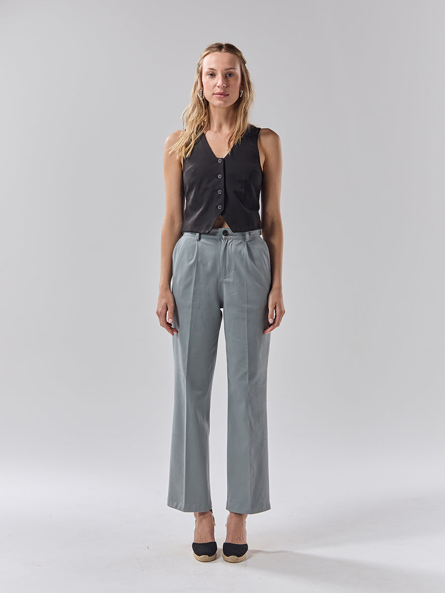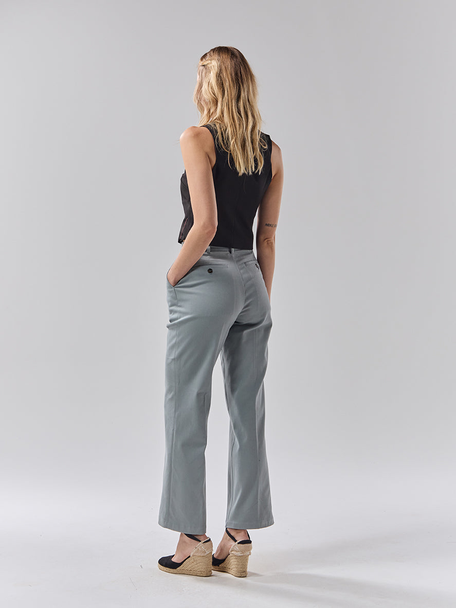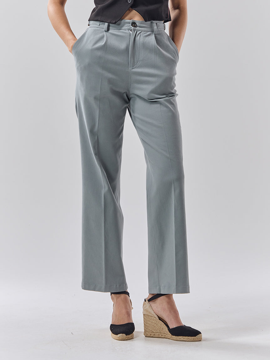 Womens Stone Grey Cotton Trousers